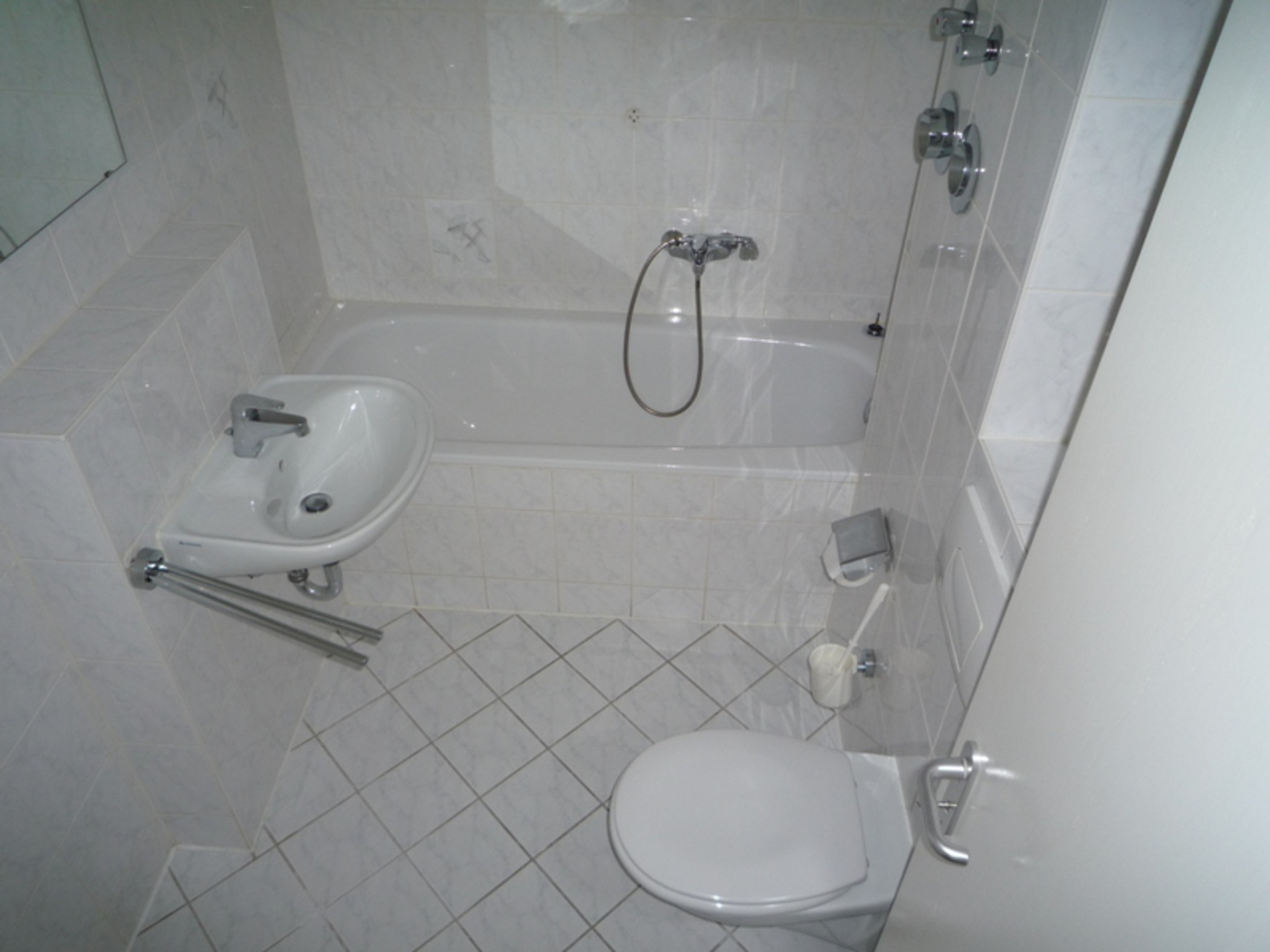 - Bad mit Badewanne, Handwaschbecken und WC
