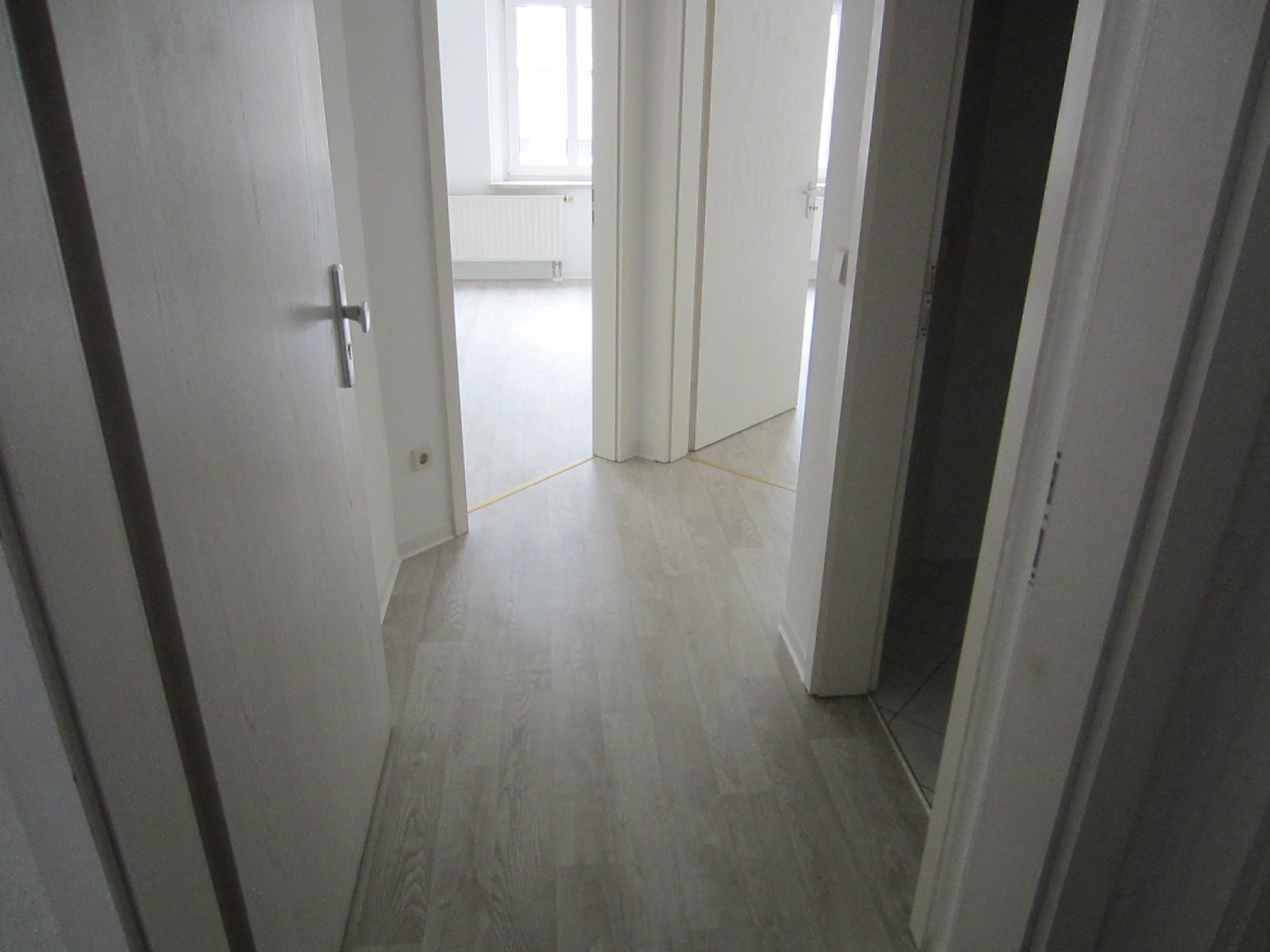 - in allen Wohn/- und Schlafräumen sowie dem Flur ist Laminat verlegt