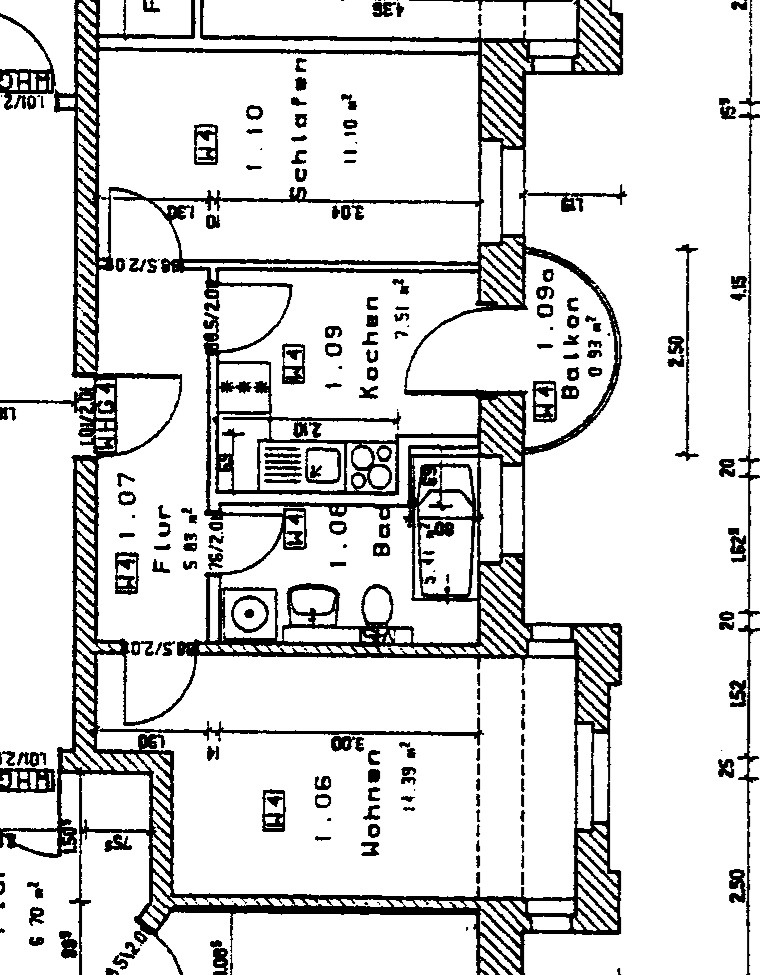 Aufteilung der Wohnung: - Wohnen, Schlafen, Küche, Bad/WC, Flur und kleiner Balkon